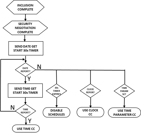 Currently most locks rely on the Hub to install/remove User Codes and to manage the times and dates when the codes are valid. Thus, the lock need not know the current date/time and does not need to store schedules and apply them to User Codes. This makes the lock firmware simple and keeps the complexity of schedules with the Hub and its significantly greater processing, storage and user interface capabilities. However, many rental property agencies prefer the battery powered lock to have the schedules built-in so that even if there is an extended power or internet failure, the proper User Codes are enabled/disabled at the proper times. Thus, there is a desire to have these schedules managed within the lock itself. Fortunately, Z-Wave already has the command classes in place to support them, but schedules are complicated.