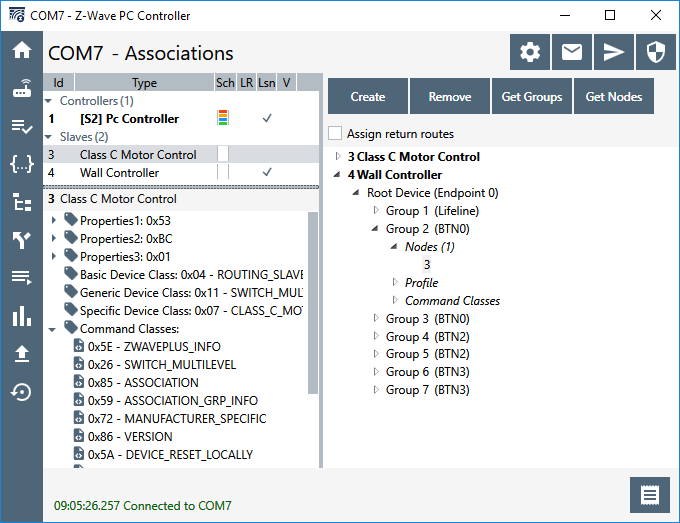 Groups 2 and 3 are identical and simply send Basic On/Off commands to the associated NodeID. Assigning a NodeID to these groups will send a command to turn the NodeID either On or Off when motion is detected or not. Assigning a NodeID to these groups enables the motion detector or the buttons to turn on/off other lights in a larger room quickly. Using the association groups is fast since the dimmer sends the Z-Wave commands directly to the light and works even if the Hub is offline for some reason.