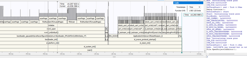 The Timeline window also allows you to immediately see how long each function is taking. What is most important here is checking your interrupt service routines to ensure they are not busy burning a lot of CPU time doing less important work and starving other time sensitive functions. The obvious waster of time is the memset and memcpy functions which I am working on another post about those specific functions so stay tuned!