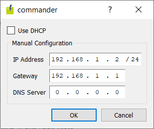 In Commander select the USB kit number in the Select Kit drop down. Then edit the Network Information and enter as shown here: