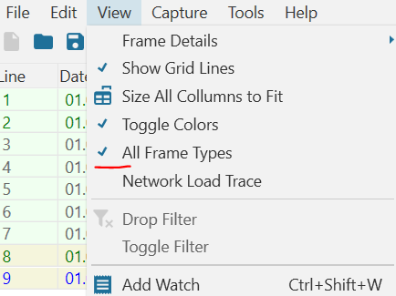 One last Zniffer recommendation is to also click on View then enable All Frames to be sure you can see the wakeup beams and CRC errors.